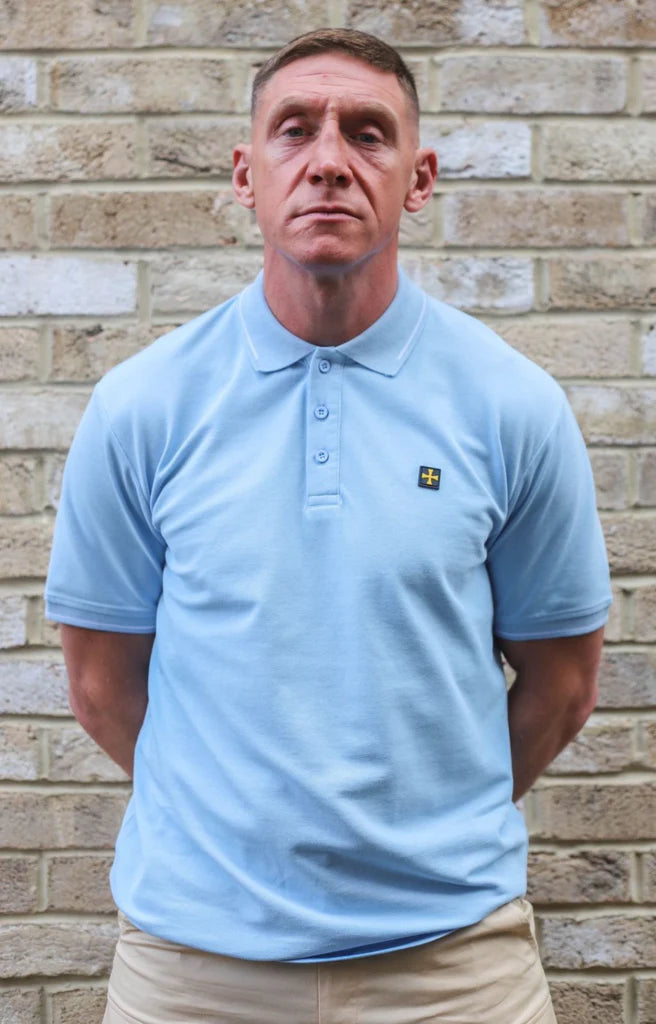 Мъжка Поло Тениска Premium Pique :: Небесносиньо/Бяло